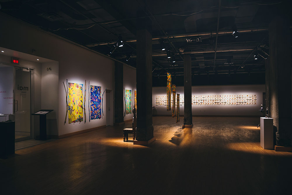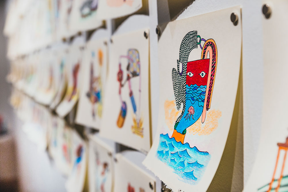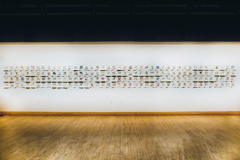 Les gribouillages dans l’exposition “Âgés et déjantés” deviennent un langage visuel instinctif, un éventail de signes spontanés qui traitent des informations et qui peuvent résoudre des problèmes créatifs… Y a-t-il une vérité derrière chaque gribouillage? … une implication invisible au-delà des mots? MAI (Montréal, arts interculturels), janvier 2018.