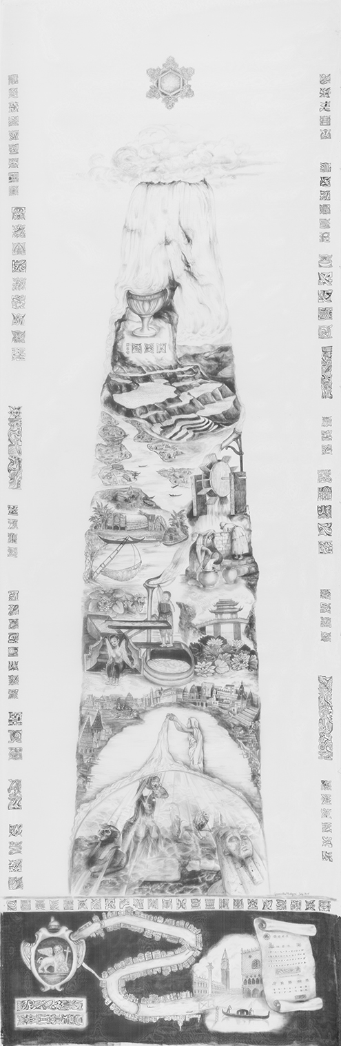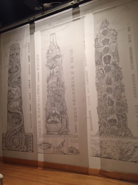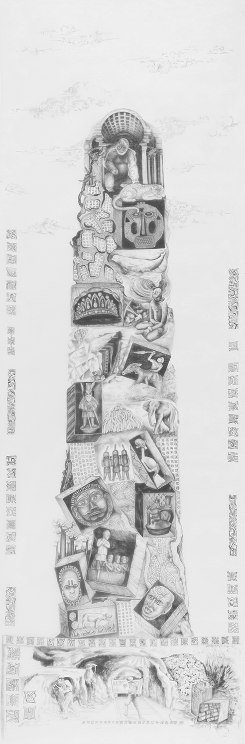 Dans les totems, je développe ma réflexion à travers des images, dont certaines puisent aux archétypes de l’humanité, d’autres appartiennent à d’antiques civilisations ou à des peuples primitifs, à des mémoires ancestrales de l’Italie, d’où je viens, ou à l’histoire contemporaine. MAI (Montréal, arts interculturels), avril 2017